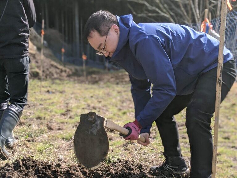植えるタイミングはもっと後になると思っていたんですが、岩﨑が最初に支援に名乗り出て、土地の段取りをパパッとやってくれたおかげで、最初の年から一気に植えることができました。翌年以降も植えています。